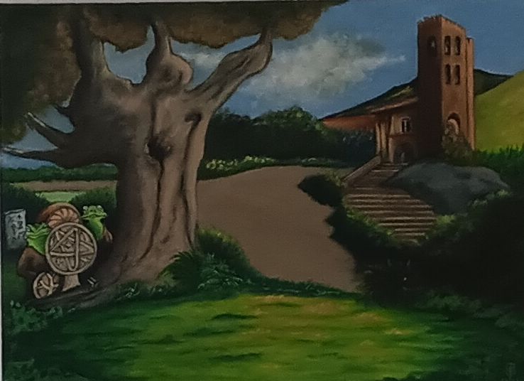Ici la tortue et le Crapaud, les laminak, sont des animaux qui suivent les pélerins durant leur marche vers saint Jacques de Compostelle.